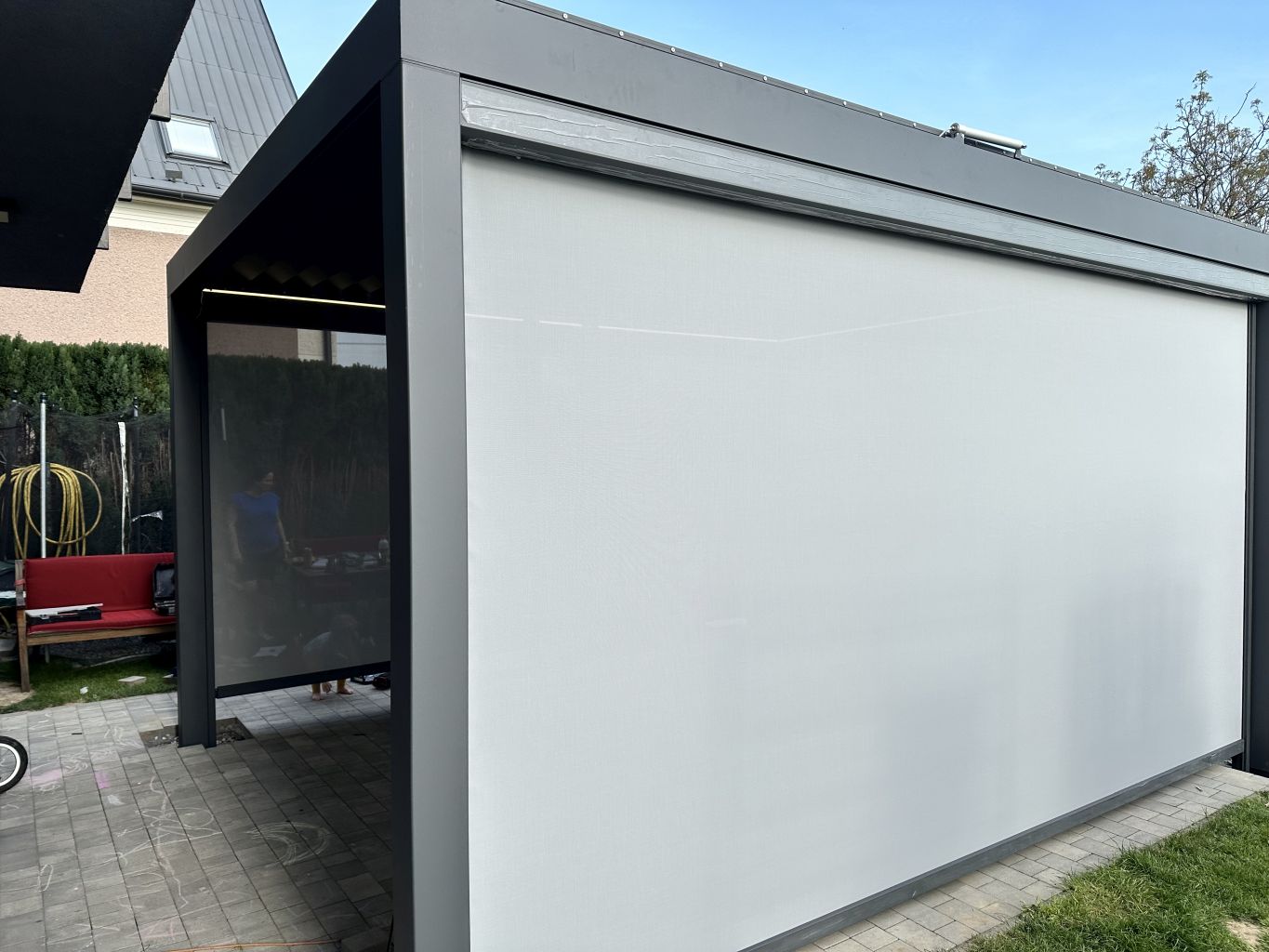 Pro vytvoření závětří a soukromí doporučujeme boční strany opatřit screeningovou látkovou roletou na DO.