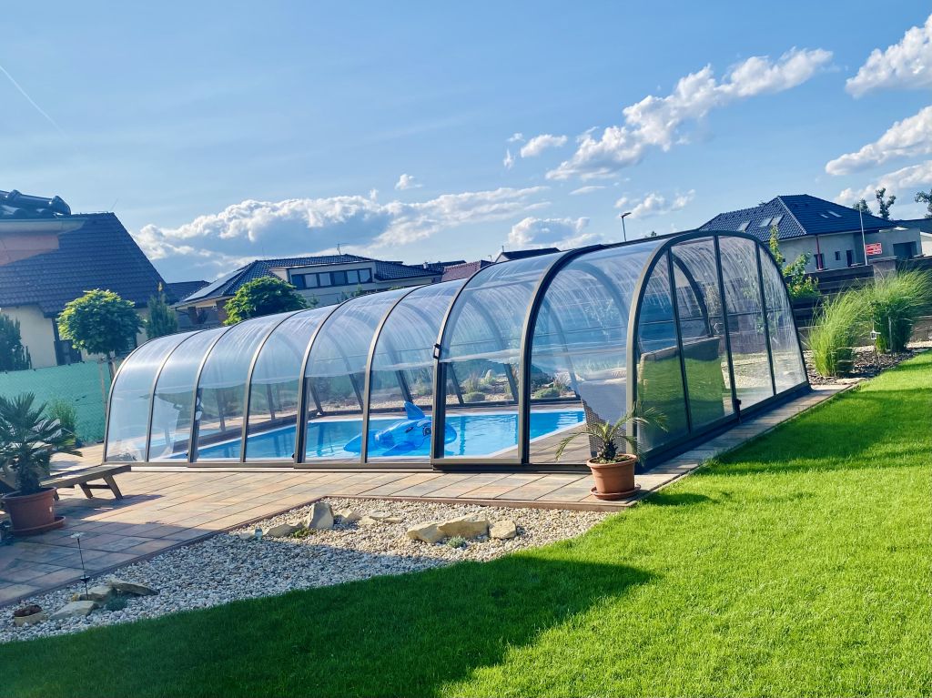 Vysoká zastřešení bazénu nabízíme v kolejnicích standardních a pochozích komfort.